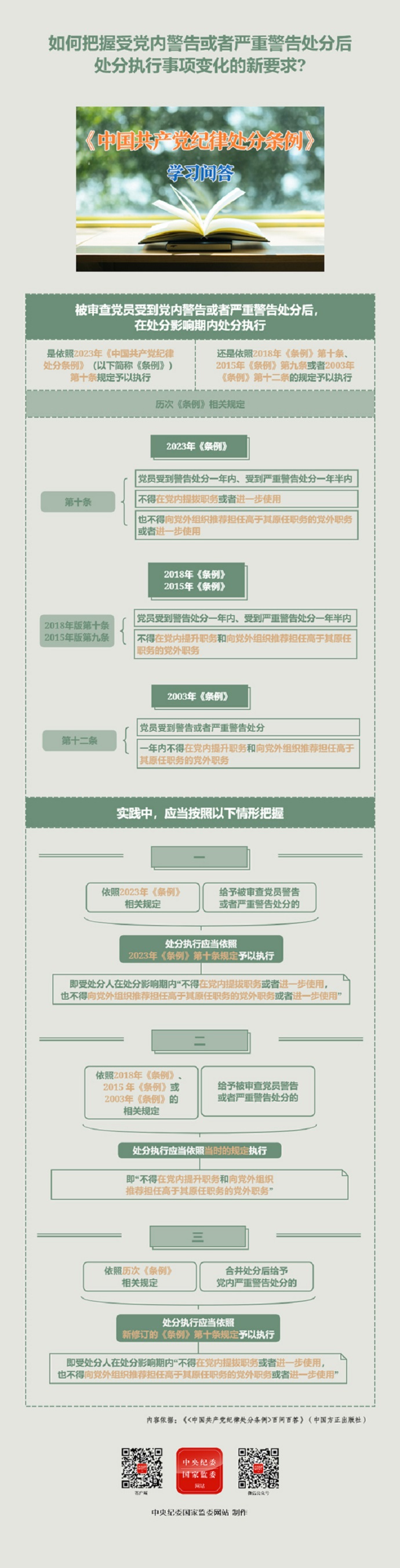 紀(jì)律處分條例·學(xué)習(xí)問答丨如何把握受黨內(nèi)警告或者嚴(yán)重警告處分后處分執(zhí)行事項(xiàng)變化的新要求?