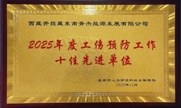 喜報(bào)!藏東南青杰能源公司榮獲昌都市“2025年度工傷預(yù)防工作十佳先進(jìn)單位”稱號
