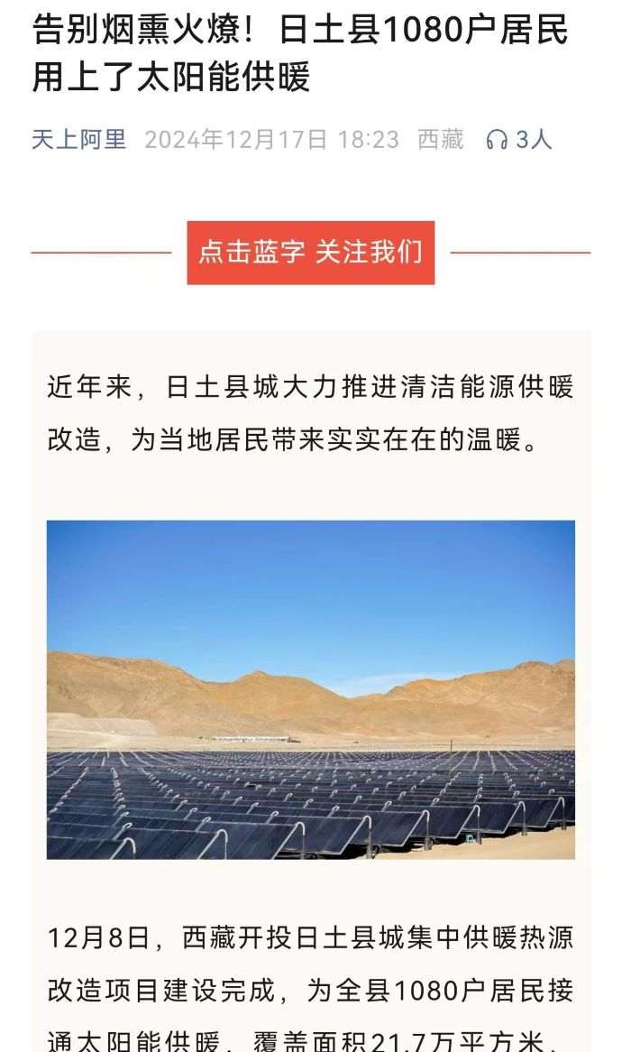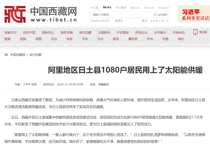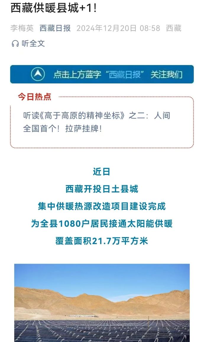 媒體報(bào)道丨告別煙熏火燎!日土縣1080戶(hù)居民用上了太陽(yáng)能供暖