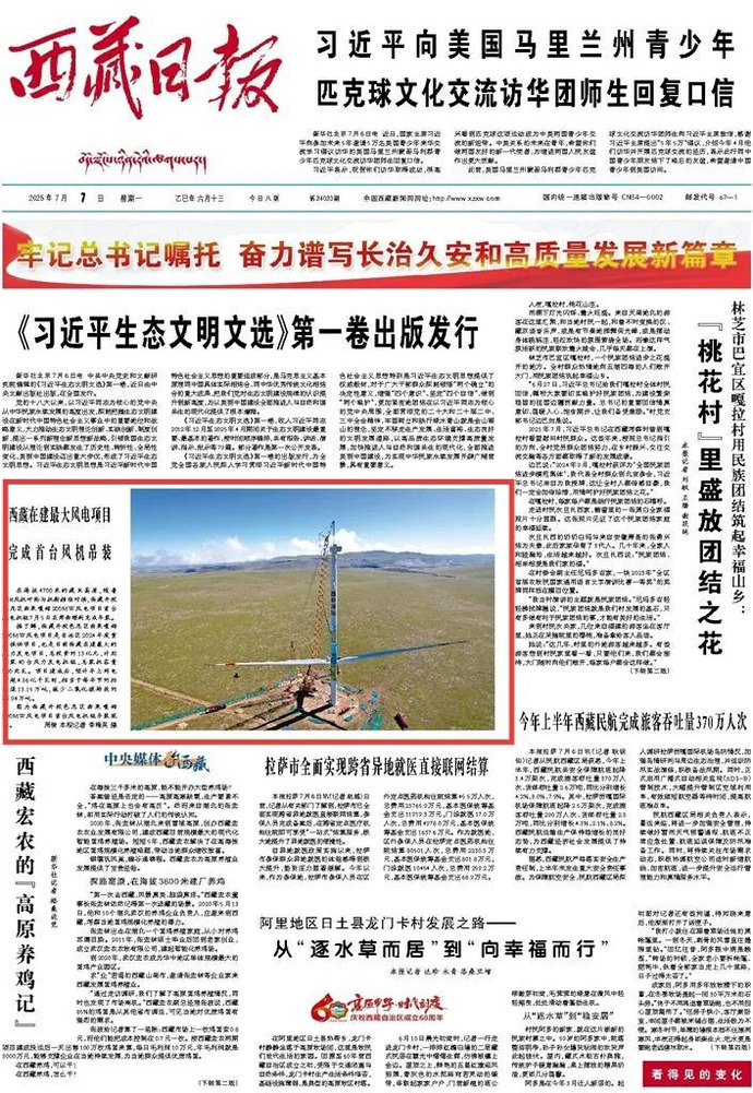 媒體報(bào)道丨西藏在建最大風(fēng)電項(xiàng)目完成首臺(tái)風(fēng)力發(fā)電機(jī)組吊裝