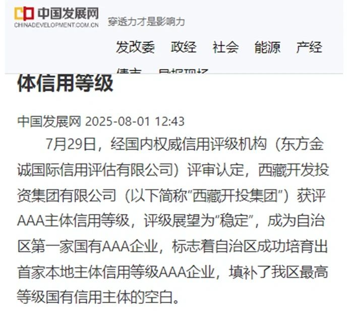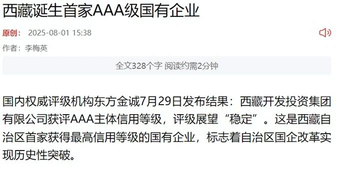 媒體報道丨西藏誕生首家AAA級國有企業(yè)