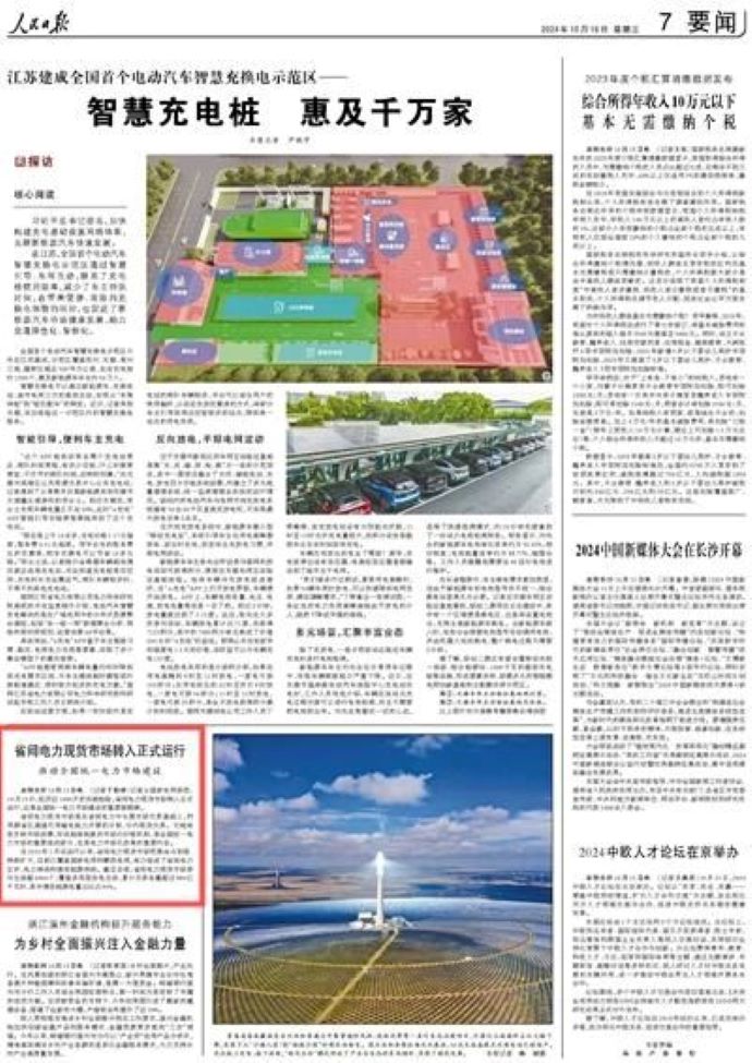 人民日報:省間電力現(xiàn)貨市場轉(zhuǎn)入正式運行 推動全國統(tǒng)一電力市場建設(shè)