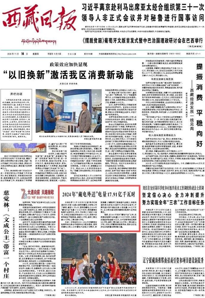 西藏日?qǐng)?bào)丨2024年“藏電外送”電量17.91億千瓦