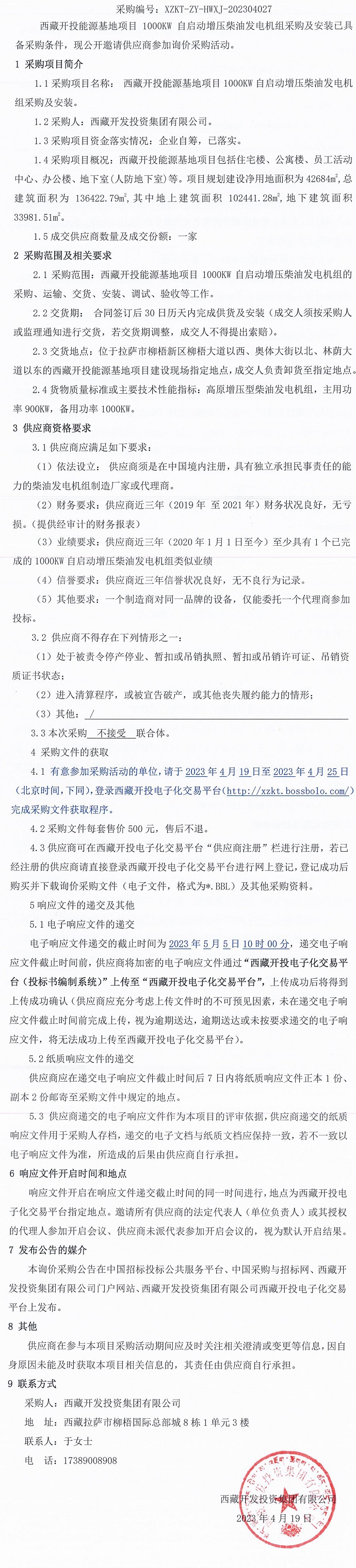 西藏開投能源基地項目1000KW自啟動增壓柴油發(fā)電機組