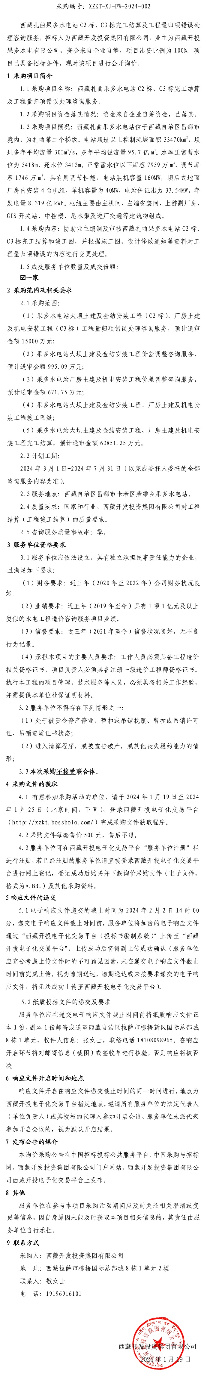 西藏扎曲果多水電站 C2 標(biāo)、C3 標(biāo)完工結(jié)算及工程量歸項(xiàng)錯(cuò)誤處理咨詢服務(wù)詢價(jià)采購公告