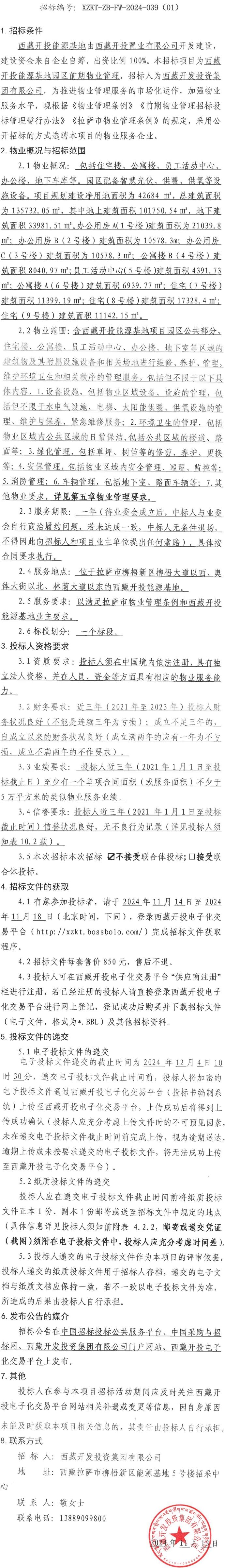 西藏開投能源基地園區(qū)前期物業(yè)管理招標公告 (第二次 )