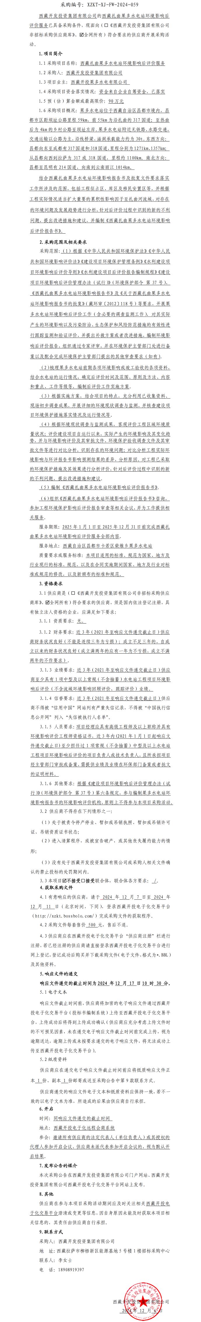 西藏扎曲果多水電站環(huán)境影響后評(píng)價(jià)服務(wù)詢價(jià)采購公告