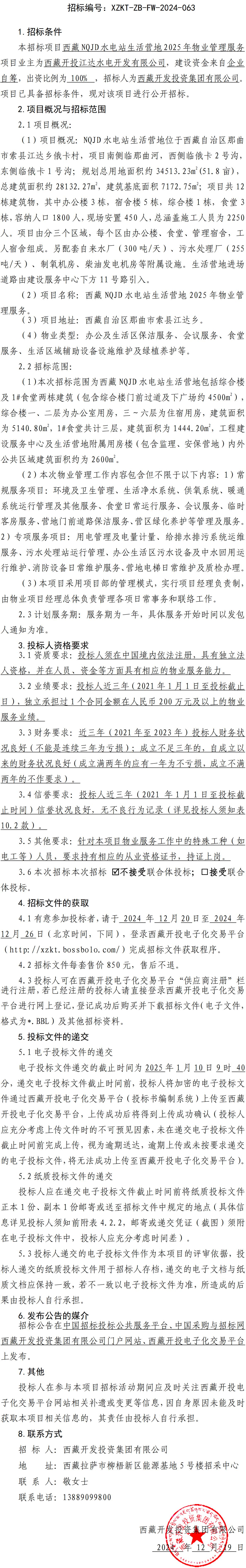 西藏NQJD水電站生活營地 2025 年物業(yè)管理服務招標公告