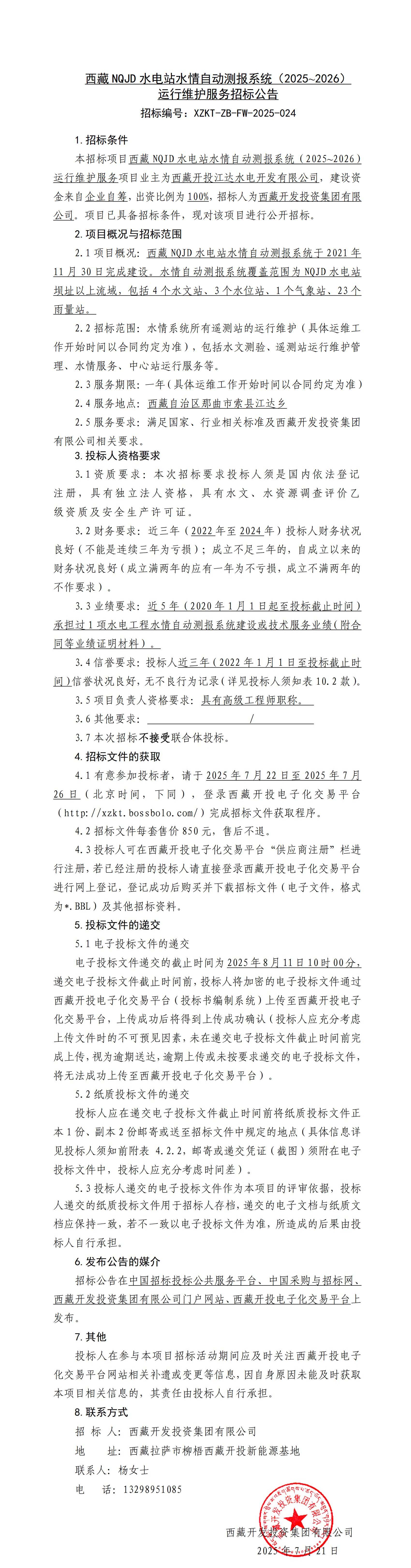 西藏NQJD水電站水情自動測報系統(tǒng)(2025~2026)運行維護服務(wù)招標(biāo)公告