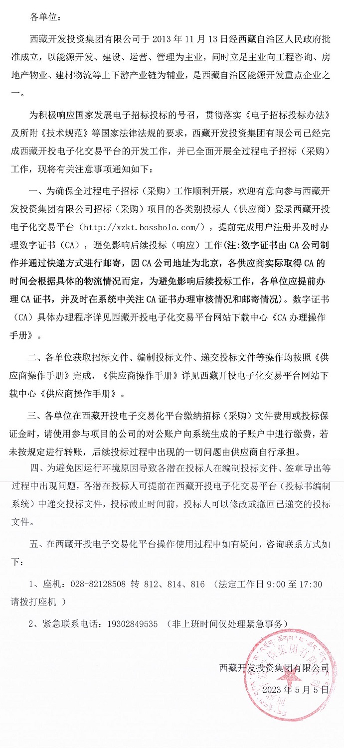 關(guān)于西藏開投電子化交易平臺(tái)操作使用方面注意事項(xiàng)的通知
