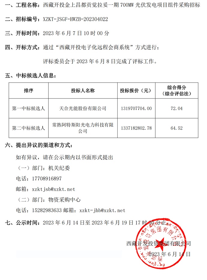中標(biāo)候選人公示