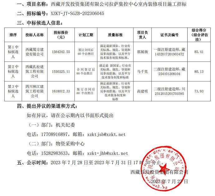 中標(biāo)候選人公示