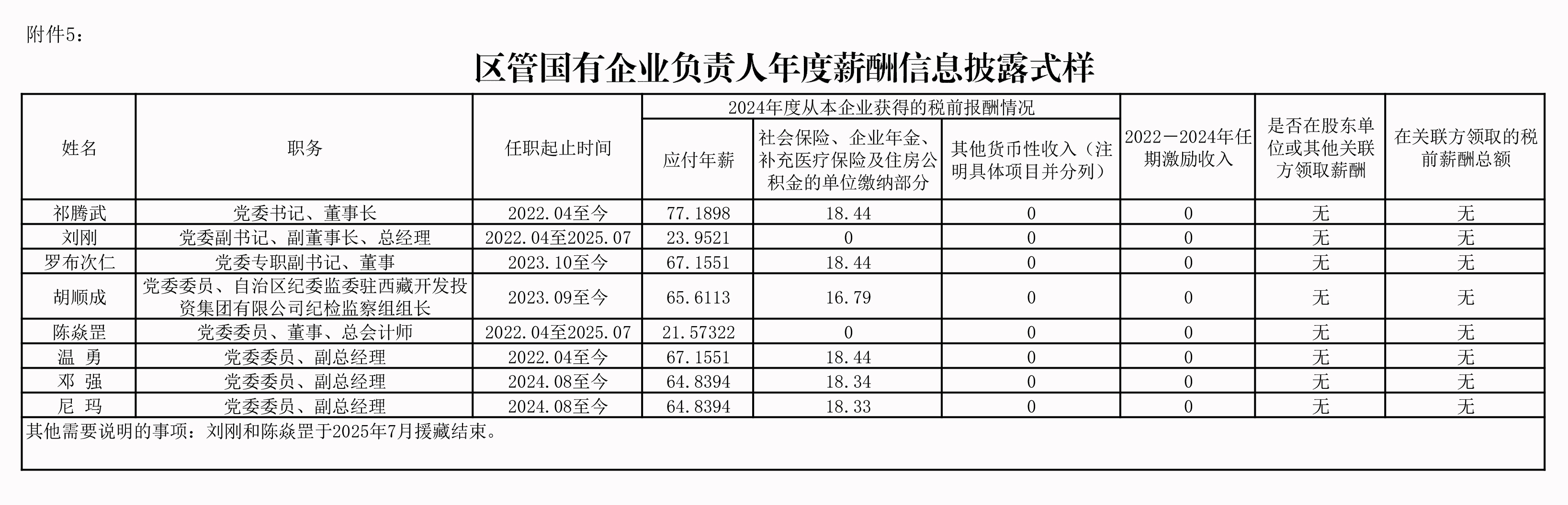 區(qū)管?chē)?guó)有企業(yè)負(fù)責(zé)人年度薪酬信息披露式樣