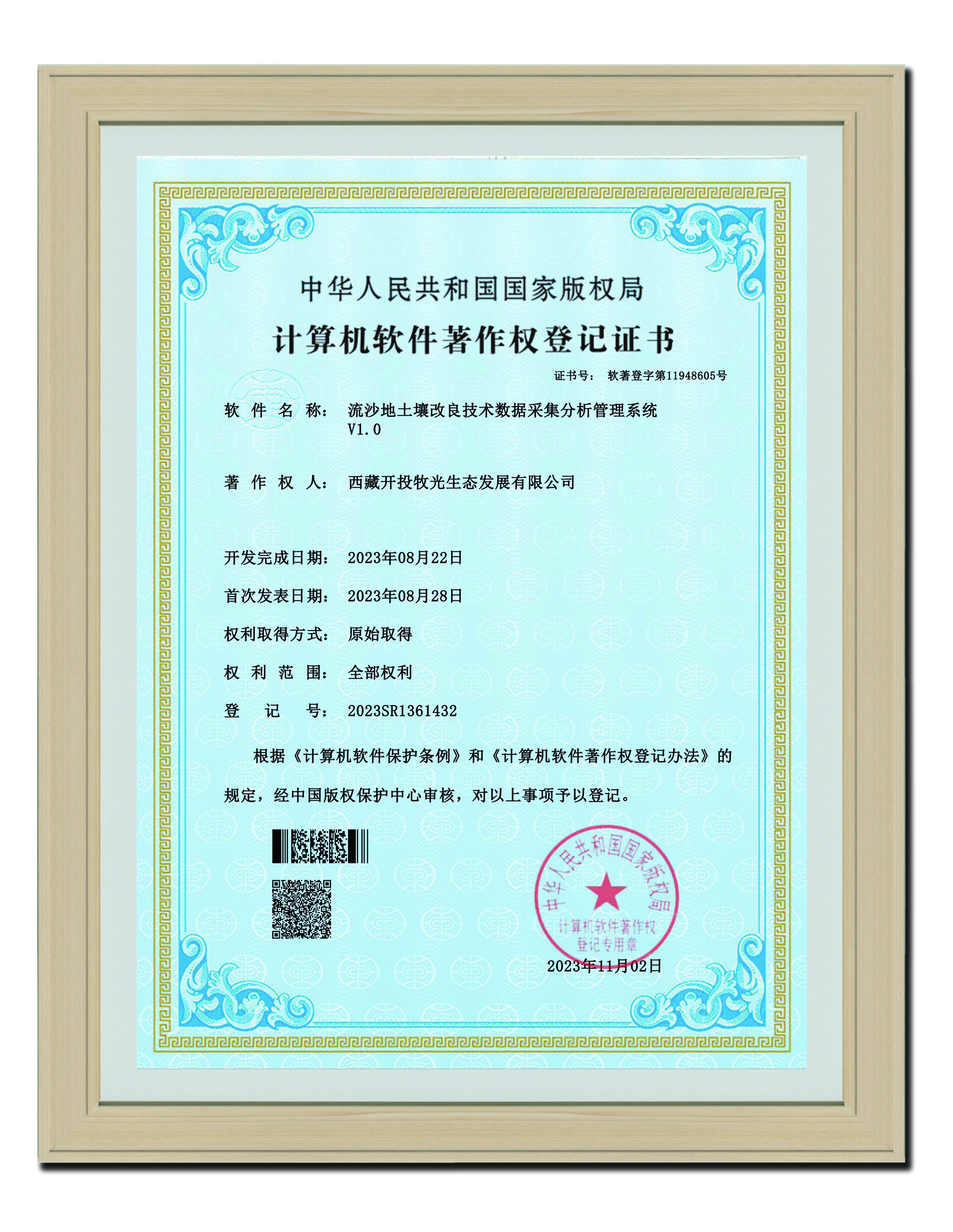 2023年11月2日 流沙地土壤改良技術(shù)數(shù)據(jù)采集分析管理系統(tǒng)V1.0