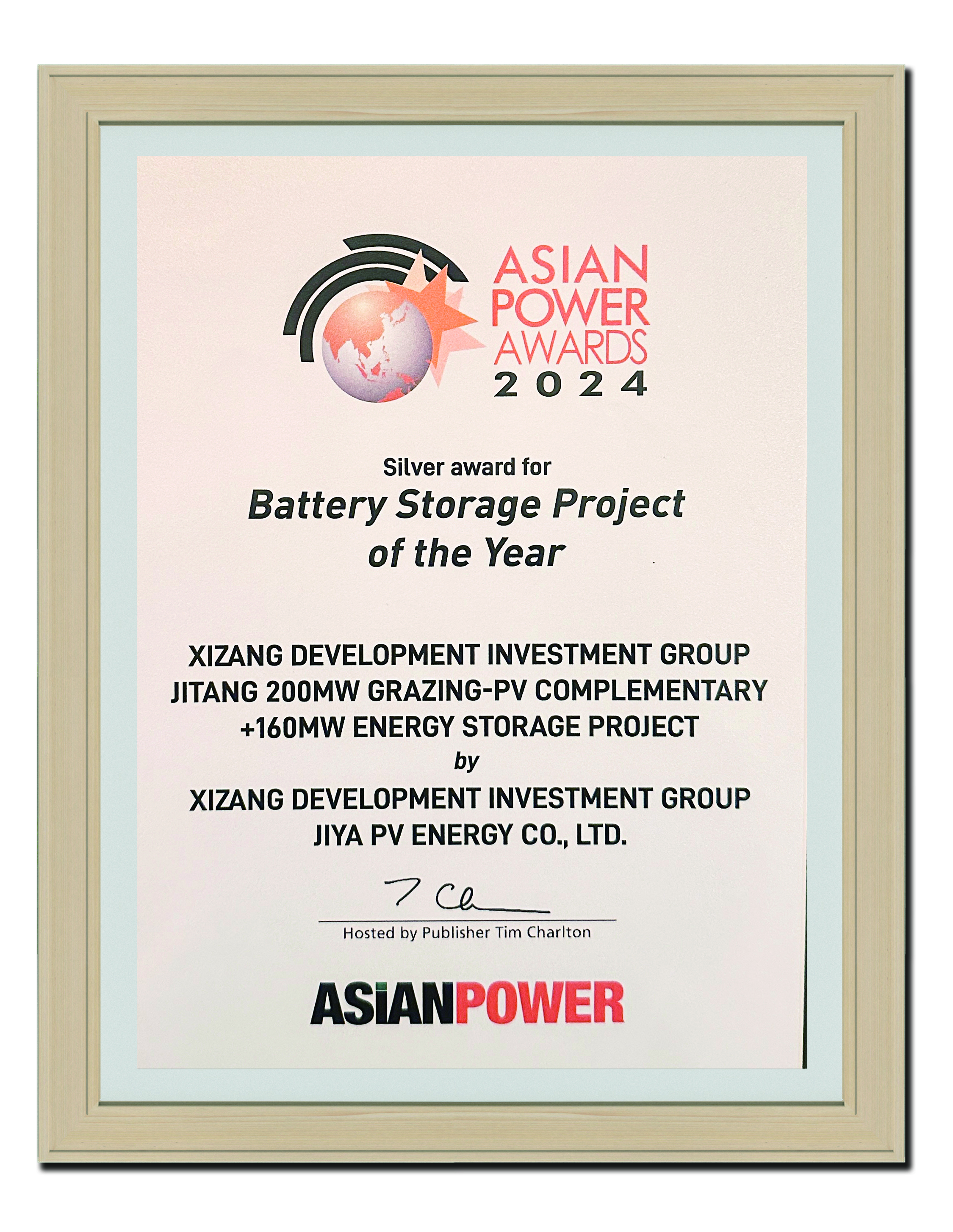 2024年亞太區(qū)年度最佳電池儲(chǔ)能項(xiàng)目銀獎(jiǎng)