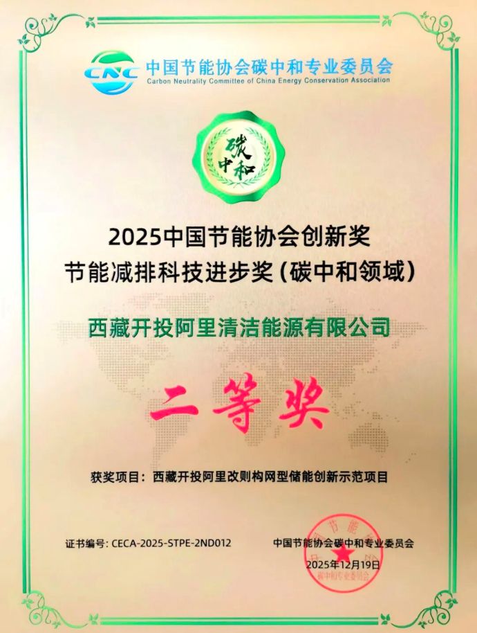 喜報(bào)!阿里改則構(gòu)網(wǎng)型儲(chǔ)能創(chuàng)新示范項(xiàng)目榮獲國家碳中和領(lǐng)域大獎(jiǎng)