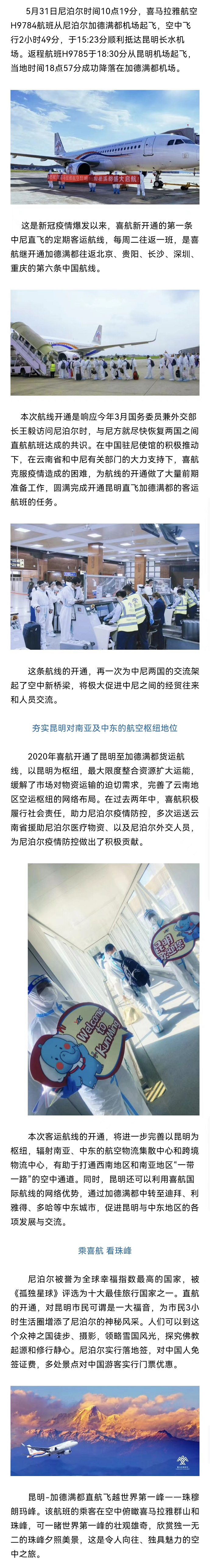 喜航開通加德滿都直飛昆明客運新航線