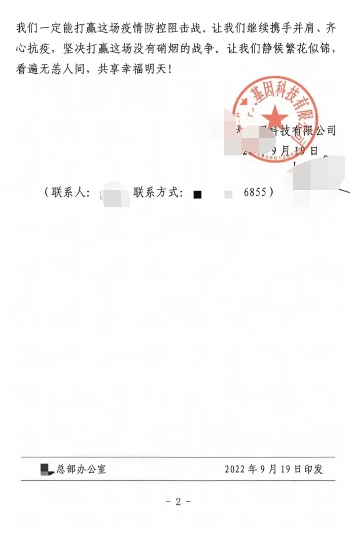 “疫”線傳真丨一封來自某核酸檢測機構總部的感謝信