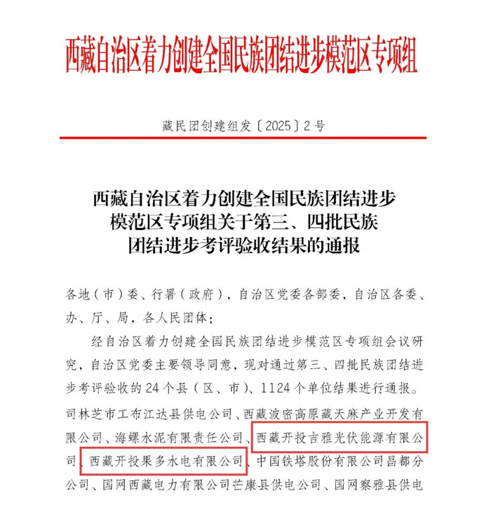 喜報!吉雅光伏公司、果多水電公司通過自治區(qū)第三、四批民族團結進步考評驗收