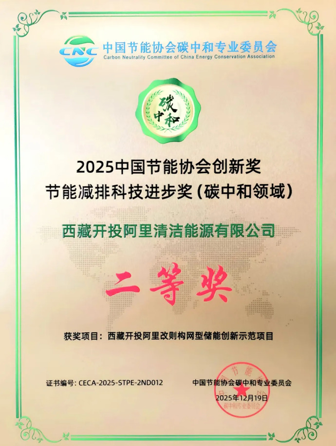 喜報(bào)!阿里改則構(gòu)網(wǎng)型儲(chǔ)能創(chuàng)新示范項(xiàng)目榮獲國(guó)家碳中和領(lǐng)域大獎(jiǎng)