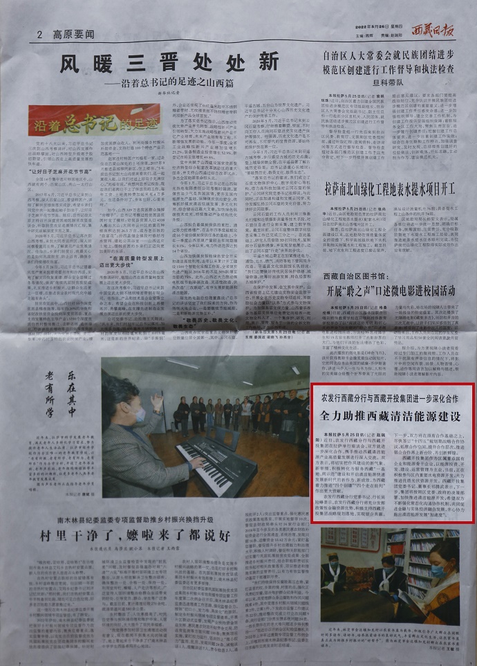 【西藏日報(bào)】報(bào)道集團(tuán)公司與農(nóng)發(fā)行西藏分行銀企攜手全力助推西藏清潔能源建設(shè)
