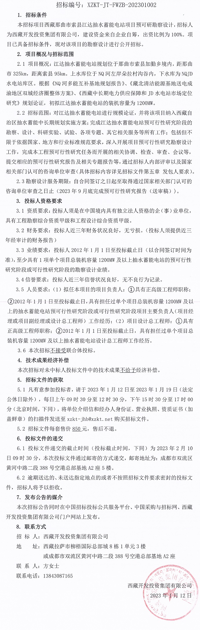 西藏那曲市索縣江達抽水蓄能電站項目預(yù)可研勘察設(shè)計招標公告