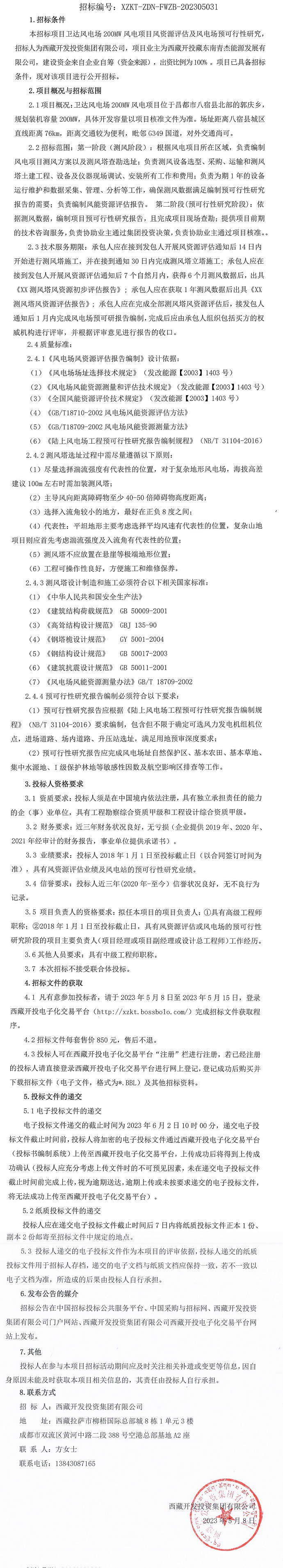 衛(wèi)達(dá)風(fēng)電場200MW風(fēng)電項(xiàng)目風(fēng)資源評(píng)估及風(fēng)電場預(yù)可行性研究招標(biāo)公告