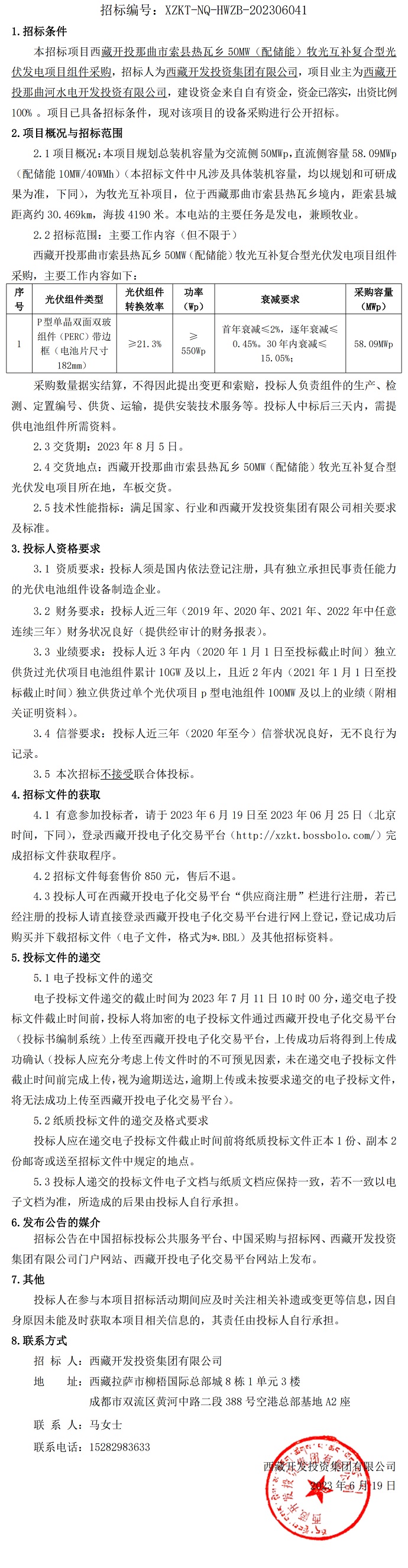 西藏開(kāi)投那曲市索縣熱瓦鄉(xiāng)50MW(配儲(chǔ)能)牧光互補(bǔ)復(fù)合型光伏發(fā)電項(xiàng)目光伏組件采購(gòu)招標(biāo)公告