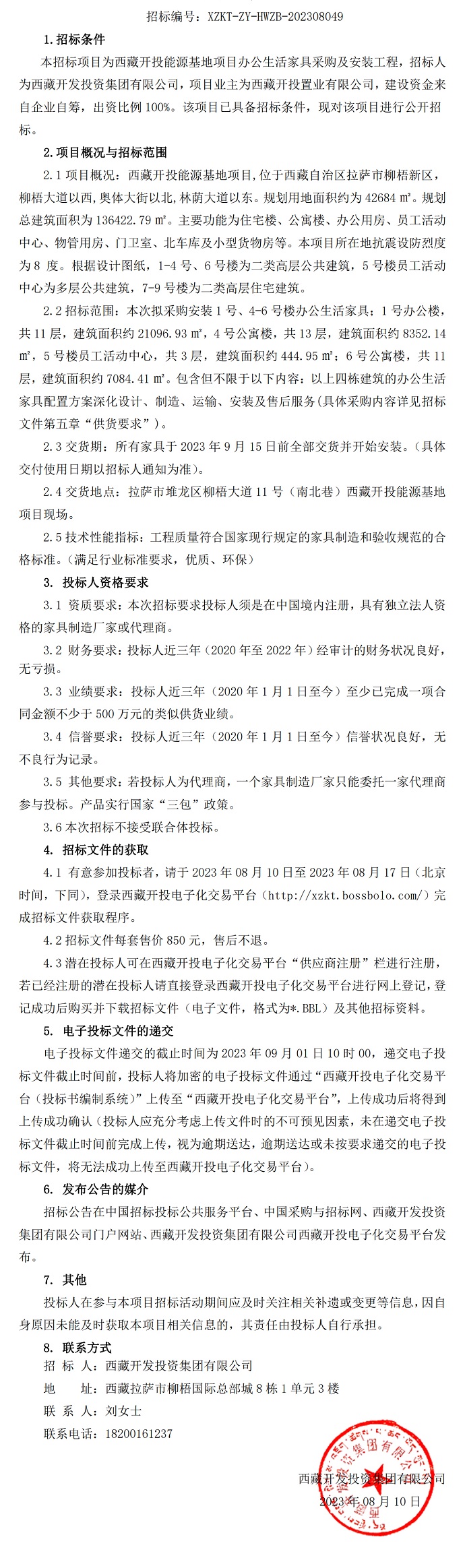 西藏開投能源基地項目辦公生活家具采購及安裝工程