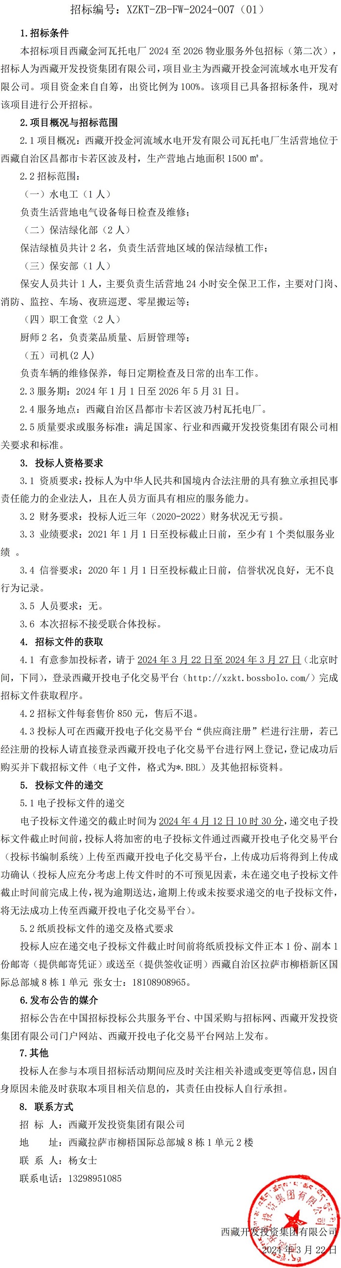 西藏金河瓦托電廠2024至2026物業(yè)服務外包