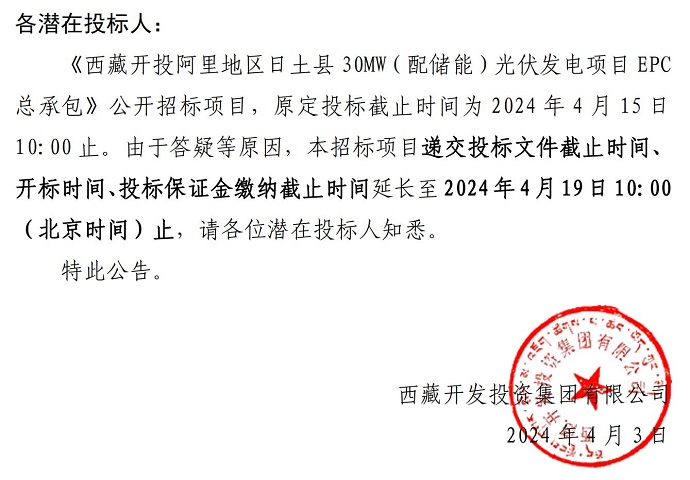 關(guān)于延長《西藏開投阿里地區(qū)日土縣30MW(配儲(chǔ)能)光伏發(fā)電