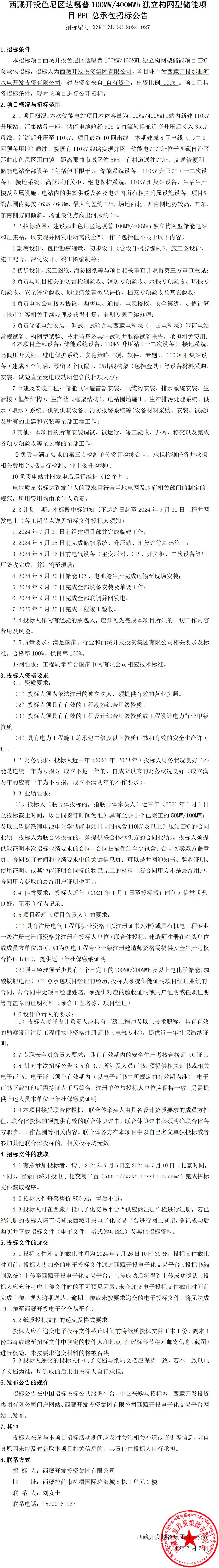 西藏開(kāi)投色尼區(qū)達(dá)嘎普100MW400MWh獨(dú)立構(gòu)網(wǎng)型儲(chǔ)能項(xiàng)目EPC總承包公告
