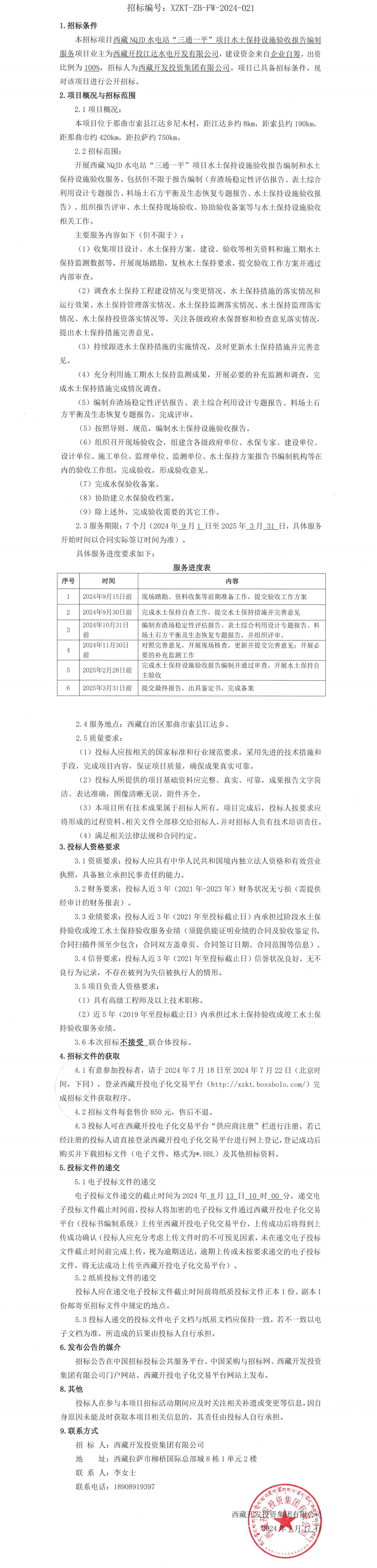 西藏NQJD水電站“三通一平”項目水土保持設(shè)施驗收報告編制服務(wù)招標(biāo)公告
