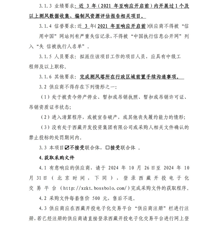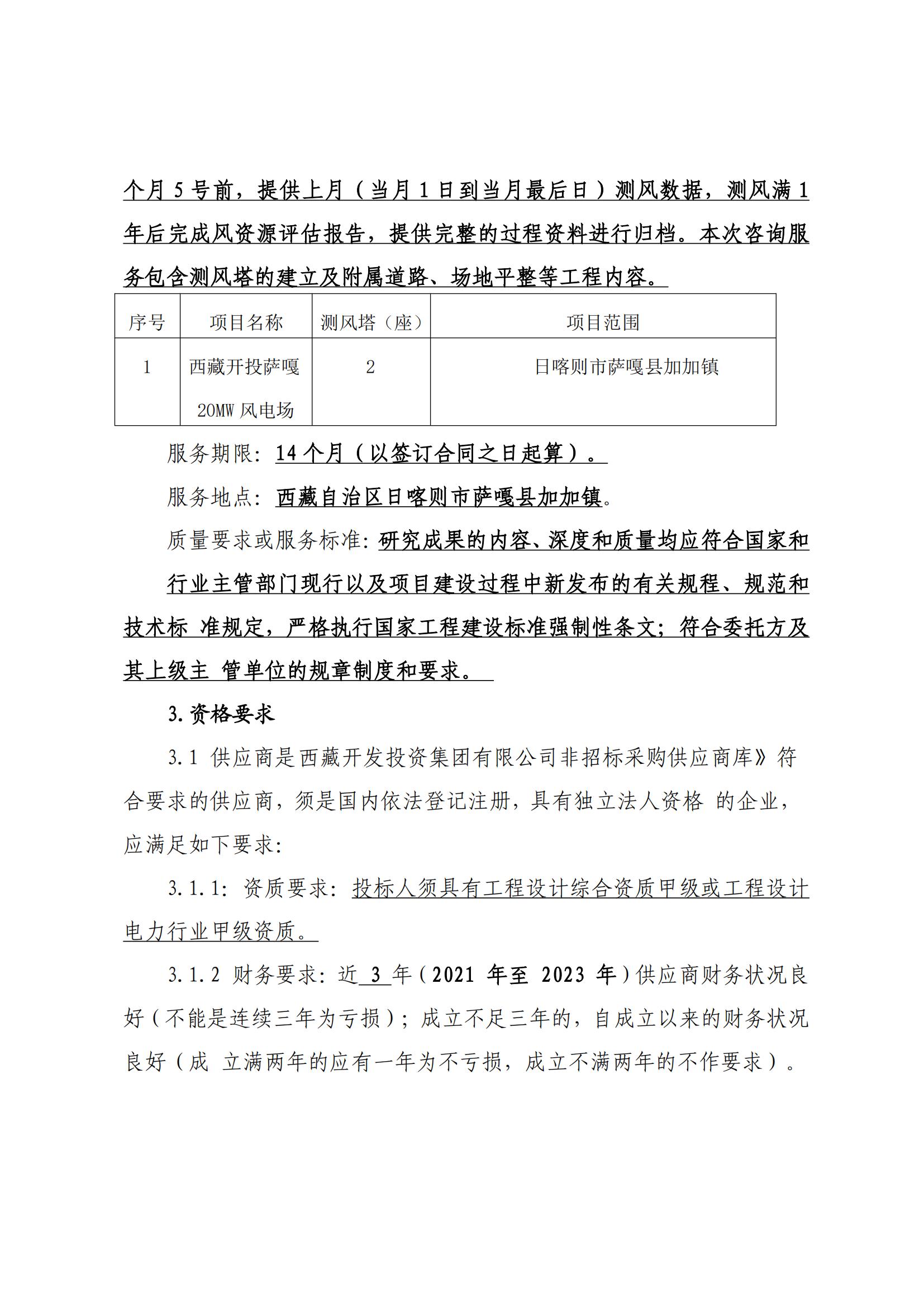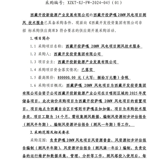 西藏開投薩嘎20ML風電項目測風技術(shù)服務詢價采購公告(第二次)