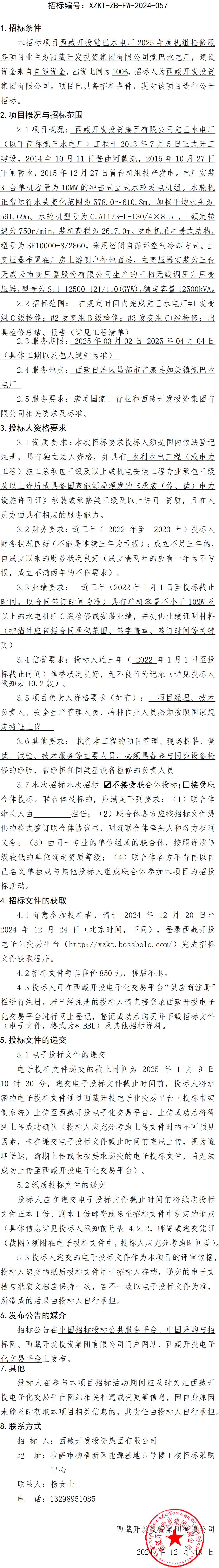 西藏開(kāi)投覺(jué)巴水電廠 2025 年度機(jī)組檢修服務(wù)招標(biāo)公告
