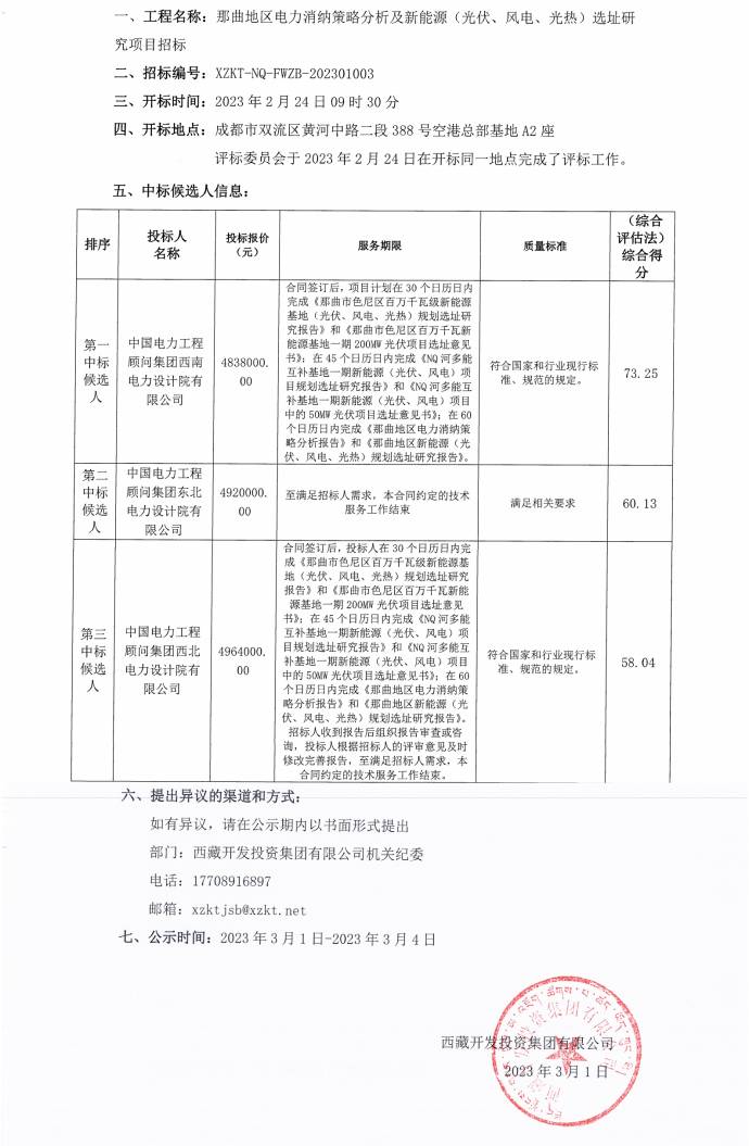中標(biāo)候選人公示