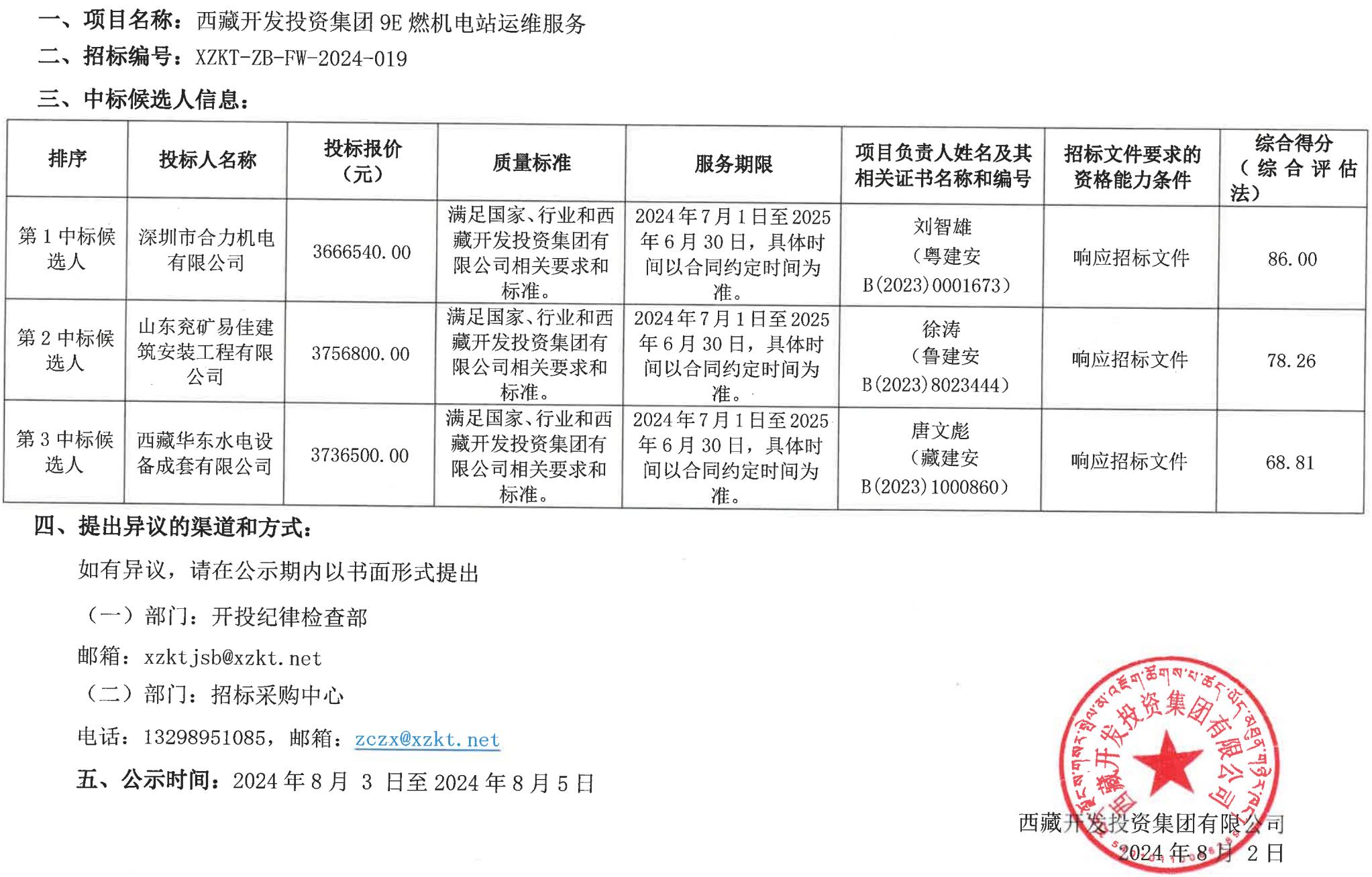 中標(biāo)候選人公示