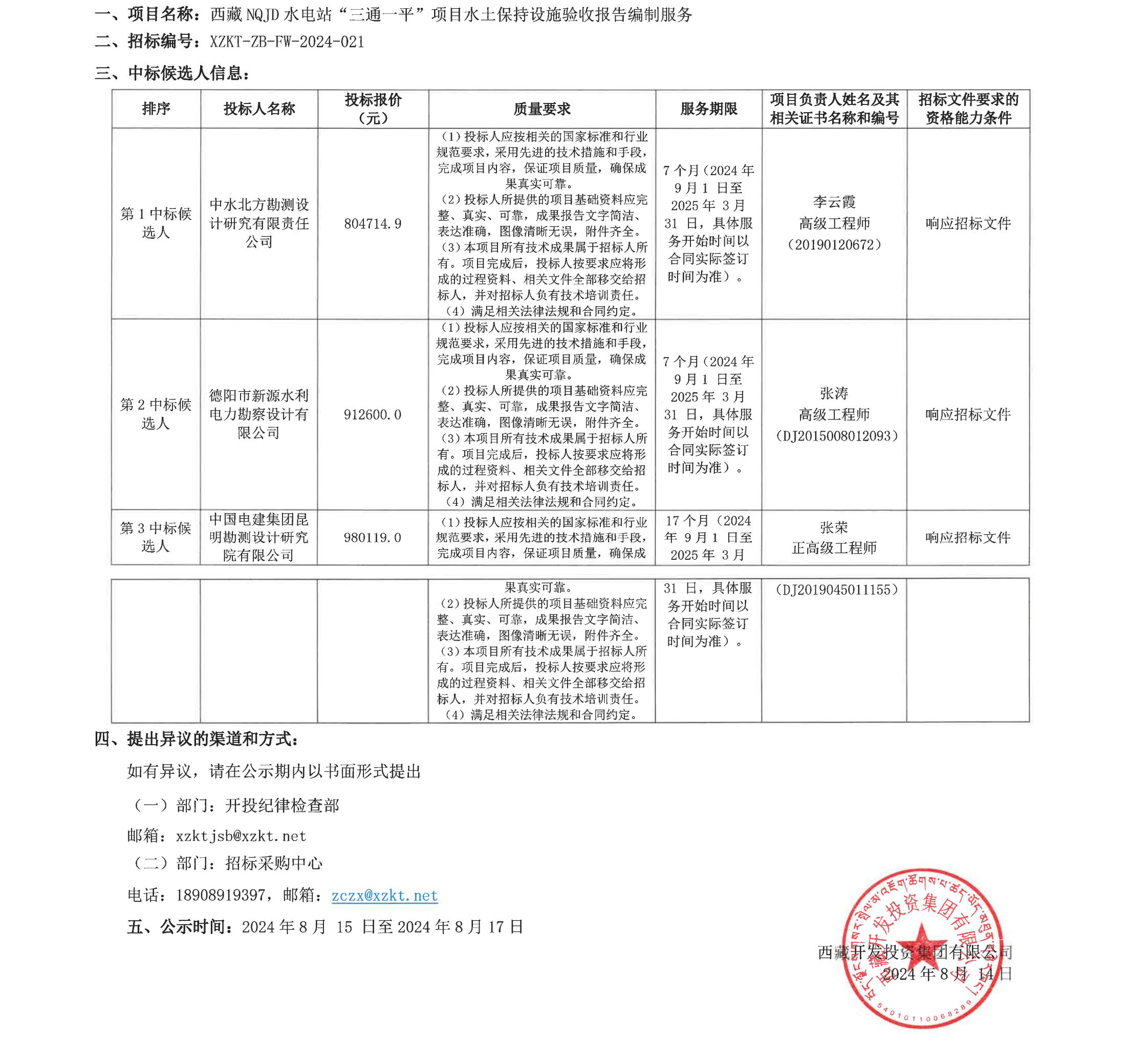 中標(biāo)候選人公示
