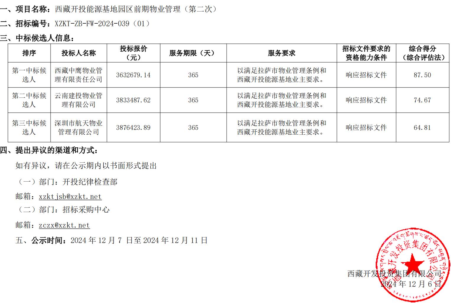 中標(biāo)候選人公示