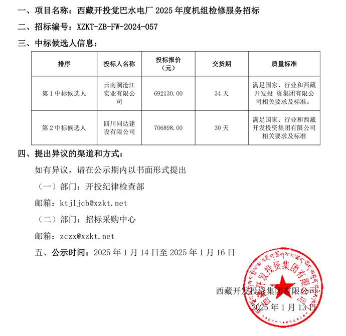 中標(biāo)候選人公示