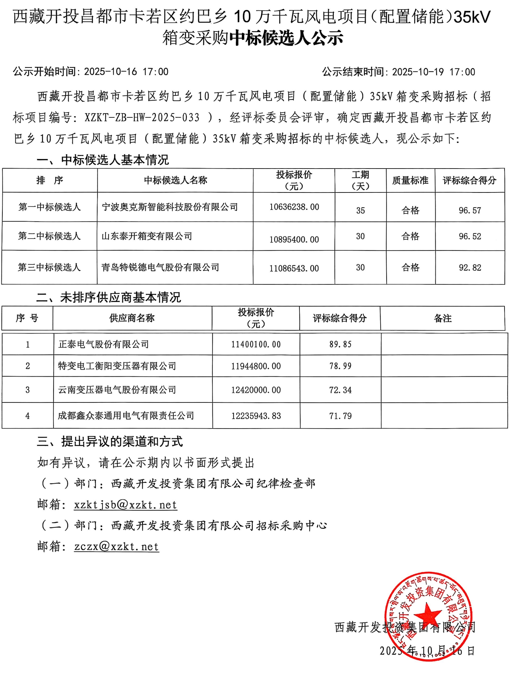 中標(biāo)候選人公示